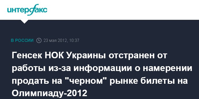 Генсек НОК Украины отстранен от работы из-за информации о намерении продать на "черном" рынке билеты на Олимпиаду-2012