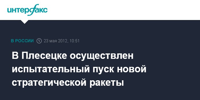 Москва. 23 мая. INTERFAX.RU - Испытательный пуск новой межконтинентальной баллистической ракеты, разработанной для РВСН, осуществлен в среду на космодроме Плесецк (Архангельская область), сообщил "Интерфаксу-АВН" источник в ракетной отрасли.