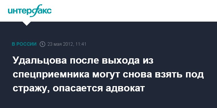 Москва. 23 мая. INTERFAX.RU - Адвокат оппозиционера Сергея Удальцова опасается, что сразу после освобождения ее подзащитного из спецприемника, его могут задержать.