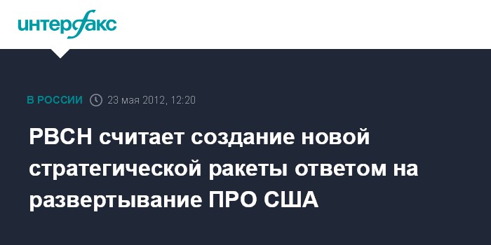 РВСН считает создание новой стратегической ракеты ответом на развертывание ПРО США