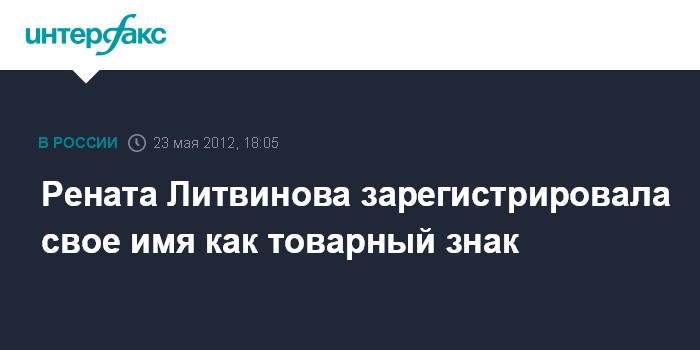 Москва. 24 мая. INTERFAX.RU – Актриса и режиссер Рената Литвинова запатентовала свое имя как товарный знак.
