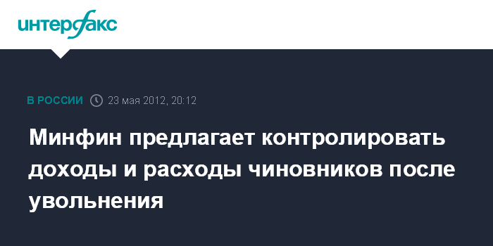 Москва. 23 мая. INTERFAX.RU - Минфин РФ предлагает контролировать доходы экс-чиновников на протяжении двух лет после их увольнения с государственной службы. Соответствующее предложение содержится в письме, направленном главой ведомства Антоном Силуановым в правительство 17 мая (копия есть у "Интерфакса").