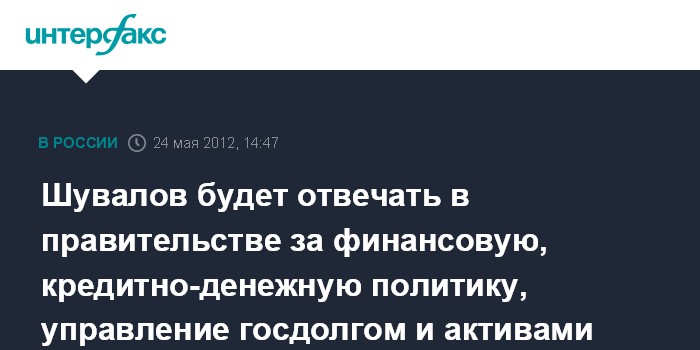 Шувалов будет отвечать в правительстве за финансовую, кредитно-денежную политику, управление госдолгом и активами