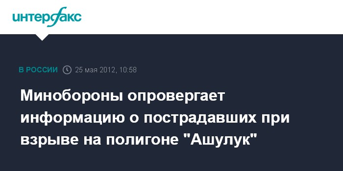 Москва. 25 мая. INTERFAX.RU - При взрыве боеприпасов на площадке утилизации полигона "Ашулук" в Астраханской области никто не пострадал, сообщил "Интерфаксу-АВН" в пятницу начальник пресс-службы Западного военного округа (ЗВО), полковник Андрей Бобрун.