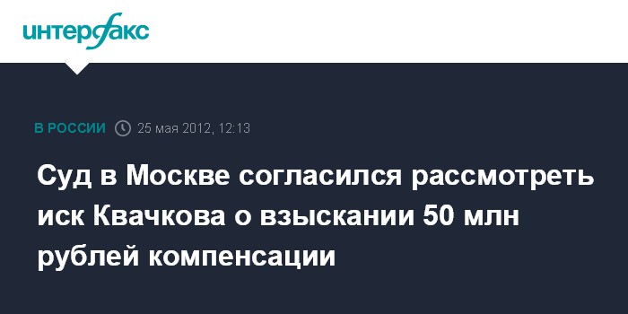 Суд в Москве согласился рассмотреть иск Квачкова о взыскании 50 млн рублей компенсации