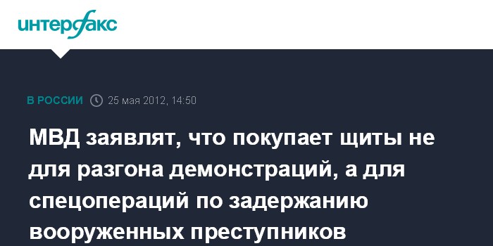Москва. 25 мая. ИНТЕРФАКС - В МВД России выразили удивление по поводу информации, появившейся в ряде СМИ, о том, что ведомство закупает спецсредства для разгона демонстрантов.