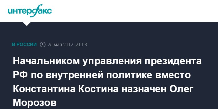 Начальником управления президента РФ по внутренней политике вместо Константина Костина назначен Олег Морозов