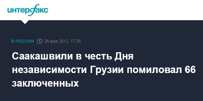Тбилиси. 26 мая. INTERFAX.RU - Президент Грузии Михаил Саакашвили в связи с отмечаемым 26 мая в стране Днем независимости помиловал 66 заключенных. Как сообщила в субботу журналистам министр по исполнению наказаний, пробации и юридической помощи Хатуна Калмахелидзе, все помилованные в течение нескольких часов выйдут на свободу.