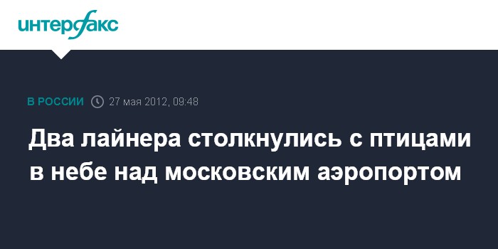 Москва. 27 мая. INTERFAX.RU - Два пассажирских Airbus при взлете и посадке в "Шереметьево" накануне вечером столкнулись с птицами, сообщил "Интерфаксу" источник в авиадиспетчерских службах Московского авиаузла в воскресенье. "Командир пассажирского Airbus A302, выполнявшего рейс из Петербурга в Москву, при посадке в "Шереметьево" 19:00 мск субботы доложил о попадании птицы, однако благодаря мастерству пилотов машину удалось благополучно посадить. На послеполетном осмотре на крыле лайнера была обнаружена вмятина", - отметил источник.