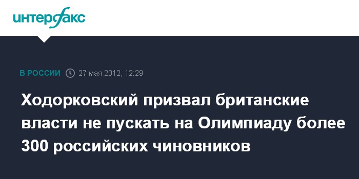 Лондон. 27 мая. INTERFAX.RU - Бывший глава ЮКОСа Михаил Ходорковский призвал правительство Великобритании запретить приезд на Олимпиаду в Лондоне ряду российских чиновников, сообщает в воскресенье веб-сайт британский газеты "Санди телеграф".