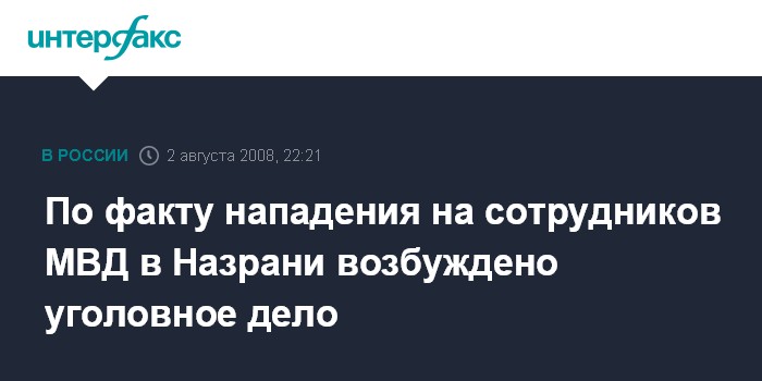 Назрань. 2 августа. ИНТЕРФАКС-ЮГ - По факту обстрела неизвестными автомашины с сотрудниками МВД России в муниципальном округе Плиево (Назрань) возбуждено уголовное дело.