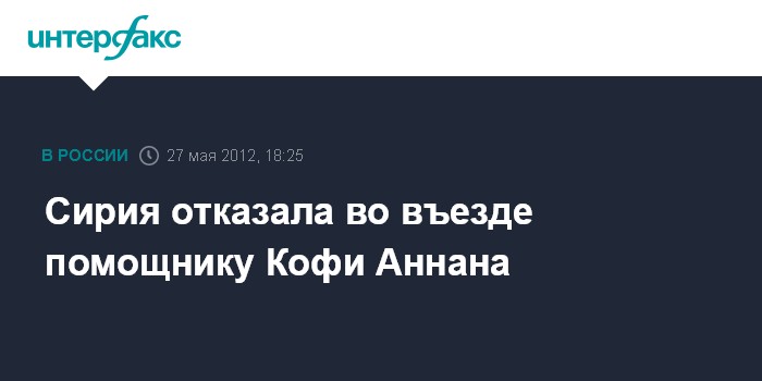 Вашингтон. 27 мая. INTERFAX.RU - Сирийские власти отказались пускать в страну помощника спецпосланника ООН и Лиги арабских государств (ЛАГ) Кофи Аннана Насера аль-Кидву, сообщают в воскресенье западные СМИ. Представитель ЛАГ отметил, что решение Дамаска не пускать в страну Н.аль-Кидву связано с тем, что власти Сирии не хотят сотрудничать с межарабской организацией.