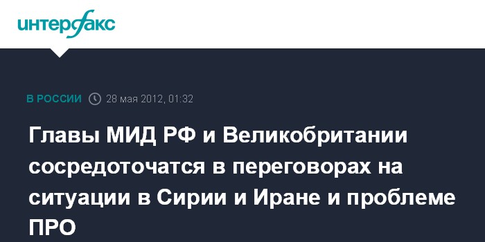 Главы МИД РФ и Великобритании сосредоточатся в переговорах на ситуации в Сирии и Иране и проблеме ПРО