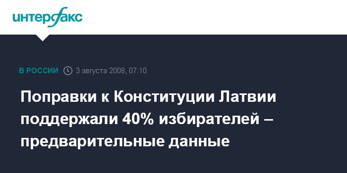 Рига. 3 августа. ИНТЕРФАКС/BNS - Согласно предварительным результатам референдума в Латвии, необходимое для вступления в силу поправок к Конституции Латвии число голосов не собрано, при этом свое отношение к ним выразили более 628,3 тысячи человек.