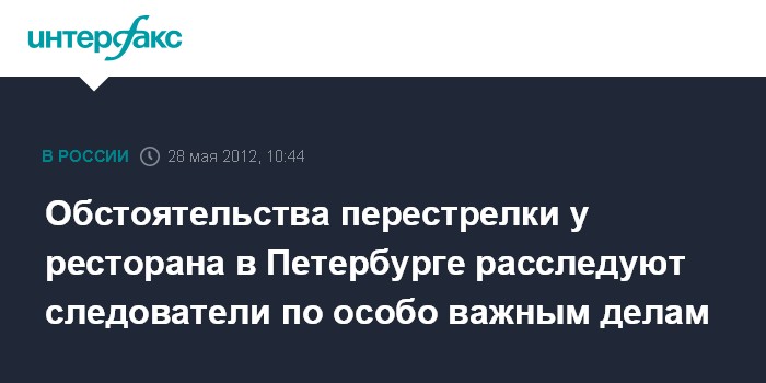Санкт-Петербург. 28 мая. INTERFAX.RU - Главное следственное управление СКР по Петербургу приняло к производству уголовное дело, возбужденное по факту перестрелки у ресторана "Камелот", в результате которой погибли два человека.