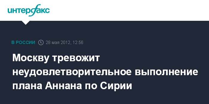 Москва. 28 мая. INTERFAX.RU - План Кофи Аннана по Сирии выполняется неудовлетворительно, заявил глава МИД РФ Сергей Лавров.