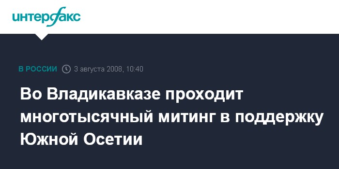 Москва. 3 августа. INTERFAX.RU - Во Владикавказе на Театральной площади по инициативе совета старейшин всеосетинского общественного движения "Стыр Ныхас" собрался митинг в поддержку Южной Осетии.