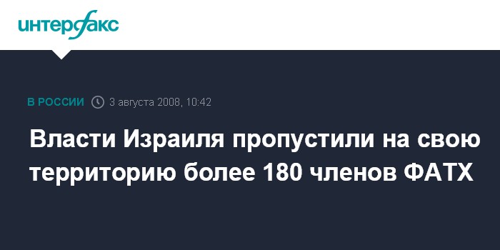 Москва. 3 августа. INTERFAX.RU - Более 180 членов палестинского движения ФАТХ получили перешли на территорию Израиля из сектора Газа, сообщил в воскресенье представитель израильской армии.