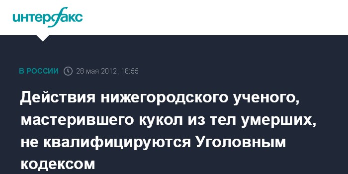 Действия нижегородского ученого, мастерившего кукол из тел умерших, не квалифицируются Уголовным кодексом