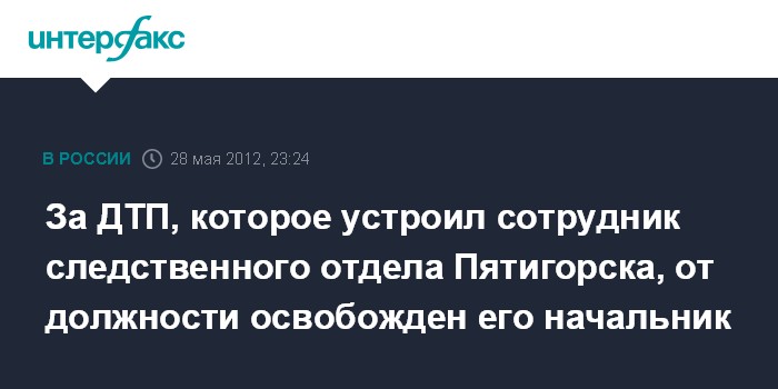 Москва. 28 мая. INTERFAX.RU - Начальник следственного отдела Пятигорска освобожден от должности за ДТП с участием его подчиненного, в котором погибла женщина.