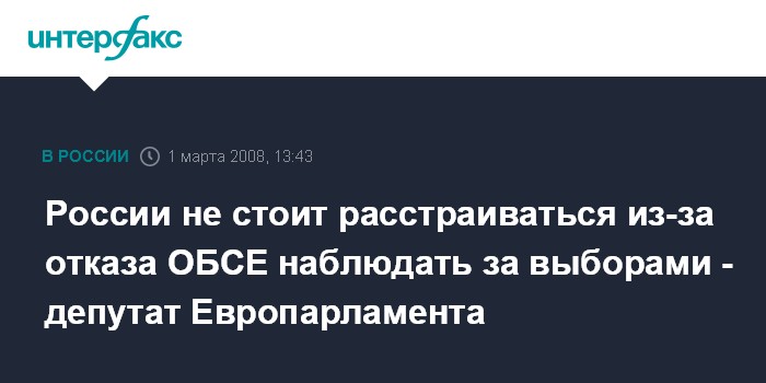 России не стоит расстраиваться из-за отказа ОБСЕ наблюдать за выборами - депутат Европарламента
