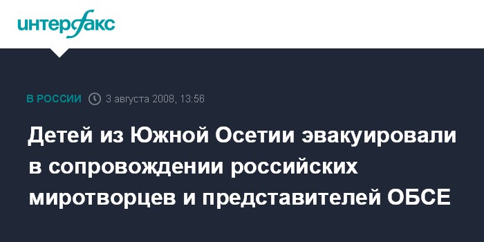 "3 августа по просьбе югоосетинской стороны организовано сопровождение автотранспорта, который осуществлял вывоз детей из удаленных сел Знаурского района Южной Осетии", - сообщил "Интерфаксу" помощник командующего ССПМ по работе со СМИ Владимир Иванов.
