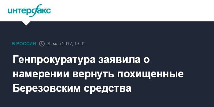 Москва. 29 мая. INTERFAX.RU - Генеральная прокуратура РФ будет добиваться неотвратимости наказания в отношении предпринимателя Бориса Березовского и возвращения денег, вывезенных им из России.