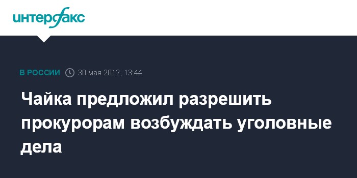 Москва. 30 мая. INTERFAX.RU - Прокуроры должны вновь получить право возбуждать уголовные дела, считает генеральный прокурор РФ Юрий Чайка.