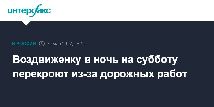 Москва. 30 мая. INTERFAX.RU - ГИБДД Москвы предупреждает о предстоящем в ночь на 2 июня перекрытии движения автотранспорта по улице Воздвиженка из-за ремонта асфальтового покрытия.