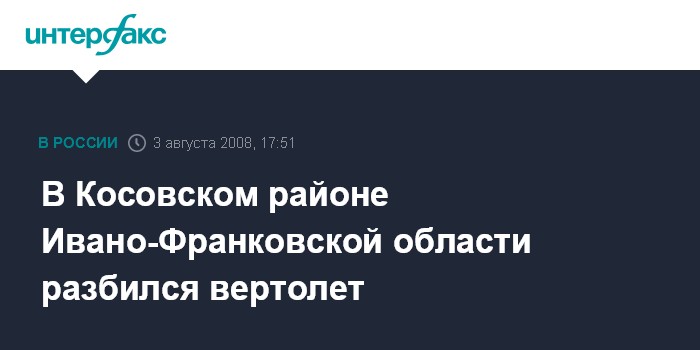 Москва. 3 августа. INTERFAX.RU - В Косовском районе Ивано-Франковской области разбился вертолет.