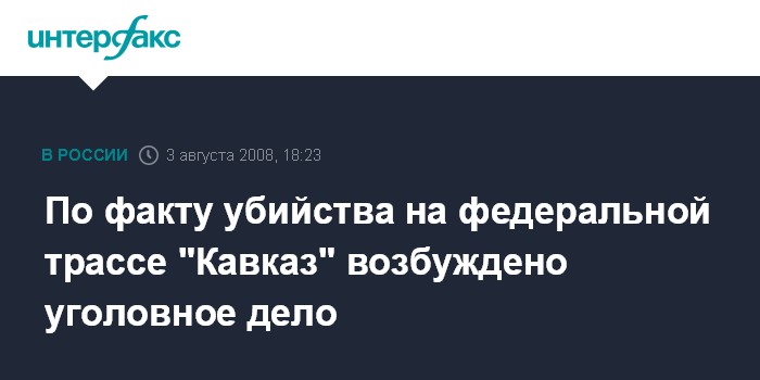 По факту убийства на федеральной трассе "Кавказ" возбуждено уголовное дело