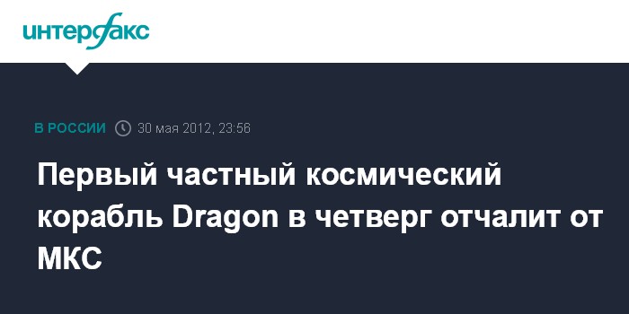 Первый частный космический корабль Dragon в четверг отчалит от МКС