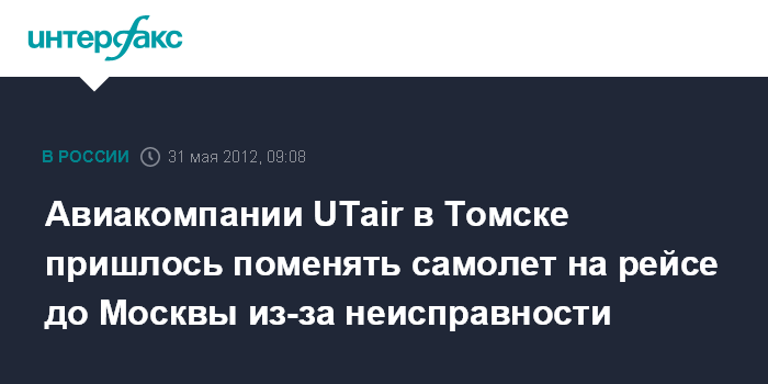 Томск. 31 мая. ИНТЕРФАКС-СИБИРЬ - Самолет Boeing 737-500 авиакомпании UTair не смог из-за неисправности вылететь в четверг утром из томского аэропорта "Богашево" в московский "Внуково".