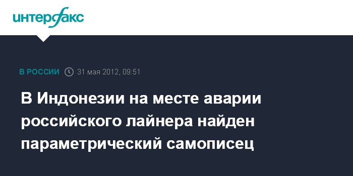 Джакарта. 31 мая. INTERFAX.RU - На месте катастрофы российского авиалайнера Sukhoi Superjet 100 в Индонезии найден параметрический самописец, сообщил журналистам официальный представитель команды поисково-спасательных работ.