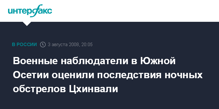 "Мониторингом установлено, что огонь в сторону жилых кварталов Цхинвали, был открыт из стрелкового оружия различного калибра, гранатометов, минометов, вооружения БМП с направления грузинских сел Эргнети, Земо-Никози, Тамарашени. Интенсивному обстрелу и последующей перестрелке предшествовал огонь снайперских групп в сторону жилых кварталов и постов МВД Южной Осетии", - сообщил помощник командующего ССПМ в зоне грузино-осетинского конфликта по работе со СМИ капитан В.Иванов.
