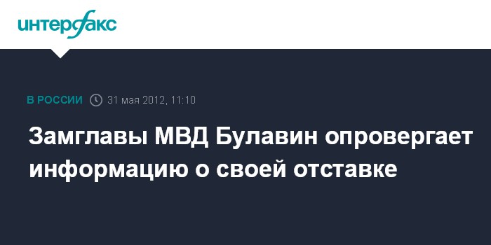 Москва. 31 мая. INTERFAX.RU - Замминистра внутренних дел РФ Сергей Булавин, координировавший по линии МВД подготовку нового закона о полиции, не писал рапортов об отставке. "Никаких рапортов я не подавал", - заявил Булавин "Интерфаксу" в четверг.