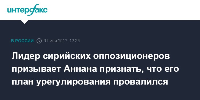 Лидер сирийских оппозиционеров призывает Аннана признать, что его план урегулирования провалился