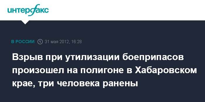 Москва. 31 мая. INTERFAX.RU - Военным следственным отделом Следственного комитета Российской Федерации по Комсомольскому-на-Амуре гарнизону возбуждено уголовное дело по факту взрыва боеприпасов во время их утилизации на полигоне.