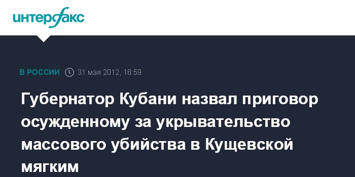 Губернатор Кубани назвал приговор осужденному за укрывательство массового убийства в Кущевской мягким