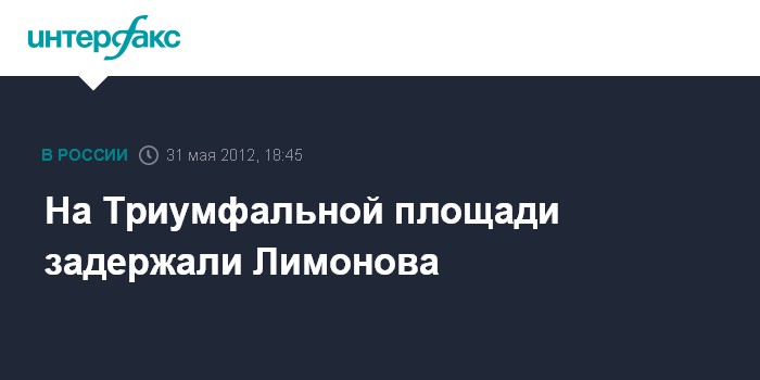 Москва. 31 мая. INTERFAX.RU - Лидер "Другой России" Эдуард Лимонов задержан полицией после прибытия на Триумфальную площадь на несанкционированную акцию оппозиции.