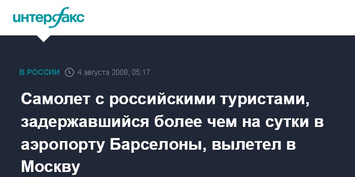 Самолет с российскими туристами, задержавшийся более чем на сутки в аэропорту Барселоны, вылетел в Москву