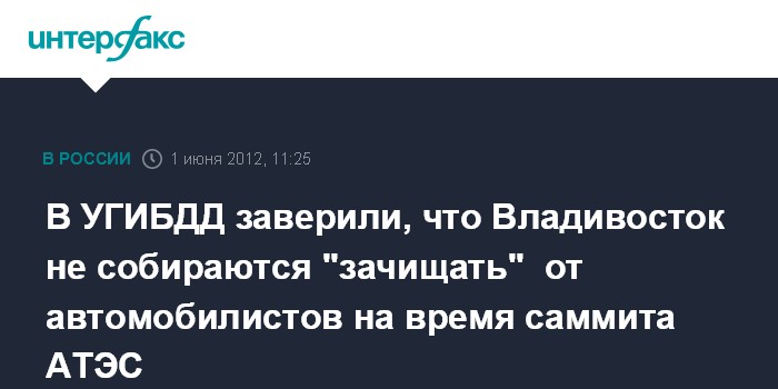 Владивосток. 1 июня. INTERFAX.RU - И.о. начальника УГИБДД по Приморскому краю Игорь Ефименко опроверг опубликованную в ряде краевых СМИ информацию о том, что перед дорожной полицией Владивостока поставлена задача в преддверие саммита АТЭС лишить водительских удостоверений как можно большее число автовладельцев.