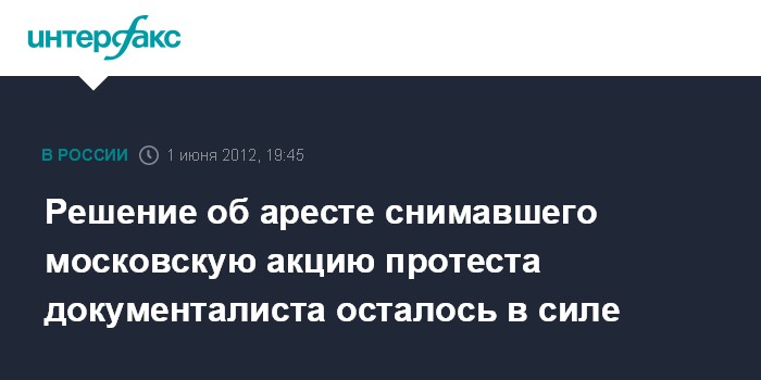 Решение об аресте снимавшего московскую акцию протеста документалиста осталось в силе