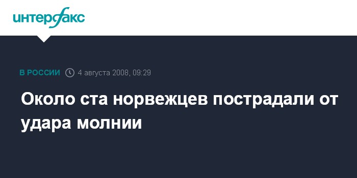 Москва. 4 августа. INTERFAX.RU - До 91 человека увеличилось количество пострадавших зрителей автогонок в Норвегии, по которым ударила молния, сообщает интернет-сайт норвежской газеты "Верденс ганг".