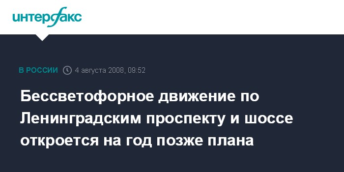 Бессветофорное движение по Ленинградским проспекту и шоссе откроется на год позже плана