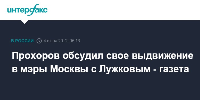 Прохоров обсудил свое выдвижение в мэры Москвы с Лужковым - газета