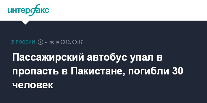 Пекин. 4 июня. INTERFAX.RU - В результате автомобильной аварии на севере Пакистана в понедельник 30 человек погибли и более 60 получили ранения, сообщили китайские СМИ.