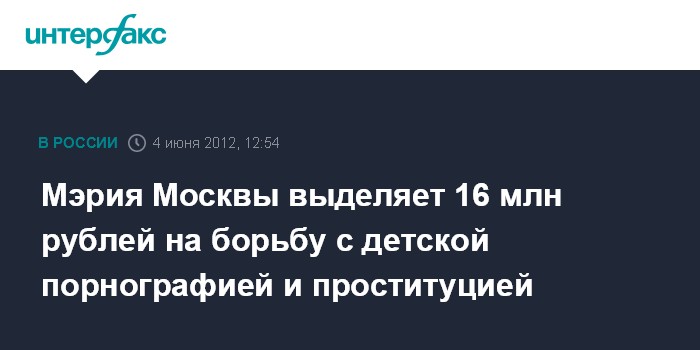Мэрия Москвы выделяет 16 млн рублей на борьбу с детской порнографией и проституцией