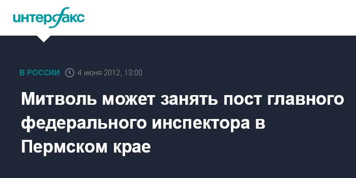 Пермь. 4 июня. INTERFAX.RU - Бывший замглавы Росприроднадзора Олег Митволь может стать новым главным федеральным инспектором (ГФИ) по Пермскому краю, сообщил агентству "Интерфакс-Поволжье" источник во властных структурах региона.