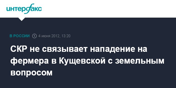 СКР не связывает нападение на фермера в Кущевской с земельным вопросом